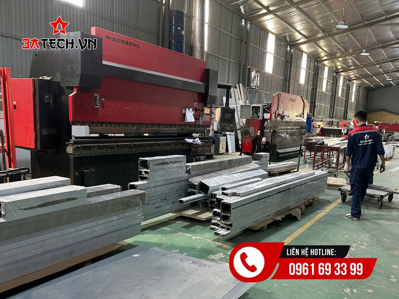 3ATECH đầu tư hệ thống máy chấn CNC hiện đại, cho phép gia công inox với độ chính xác gần như tuyệt đối. Các góc gấp được kiểm soát chặt chẽ, đảm bảo đúng thiết kế và phù hợp với từng loại cửa tự động.