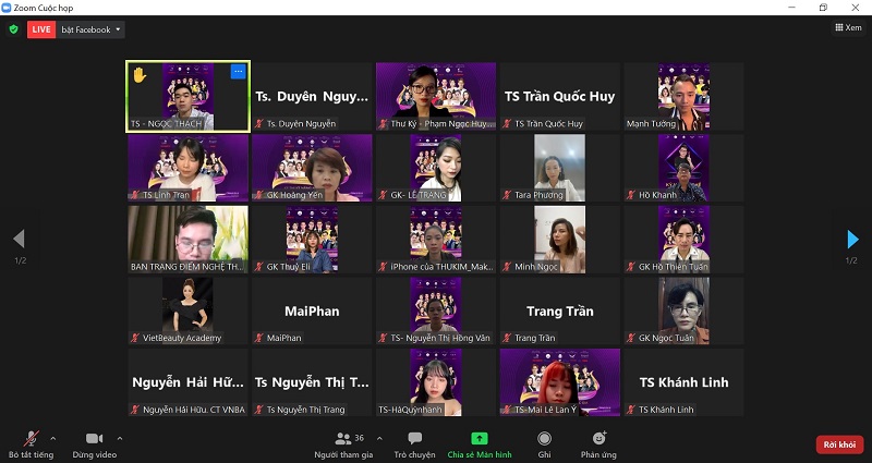 Buổi giao lưu được diễn ra trên nền tảng Zoom Metting Online và phát trực tiếp trên fanpage Ban Trang Điểm Nghệ Thuật Việt Nam.